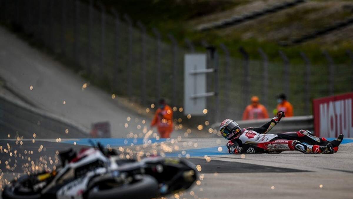 A motorcycle rider filmed himself flipping over the front of his bike after a brake malfunction. The rider said he was going around 60 mph when his front wheel locked all of a sudden which sent him flying. The rider seems uninjured. Check out the crash and the aftermath.