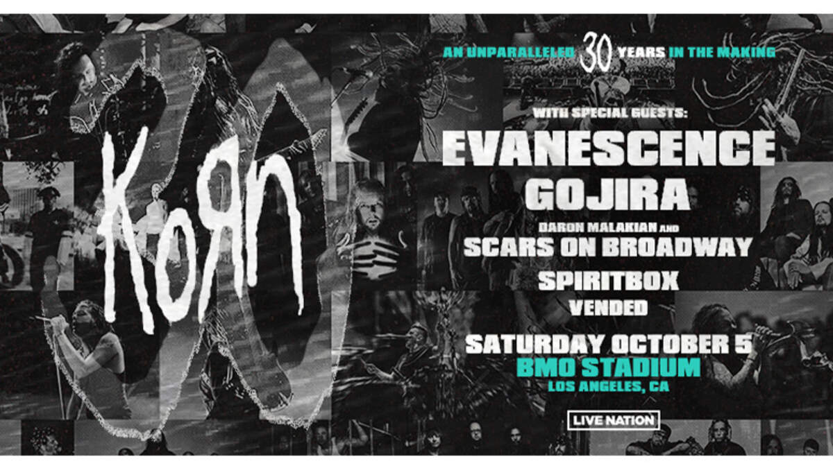 The Korn 30th Anniversary Celebration hits BMO Stadium Saturday, October 5th! Live Nation presale starts Thursday, March 7th at 10am and public onsale starts Friday, March 8th at 10am at ticketmaster.com.