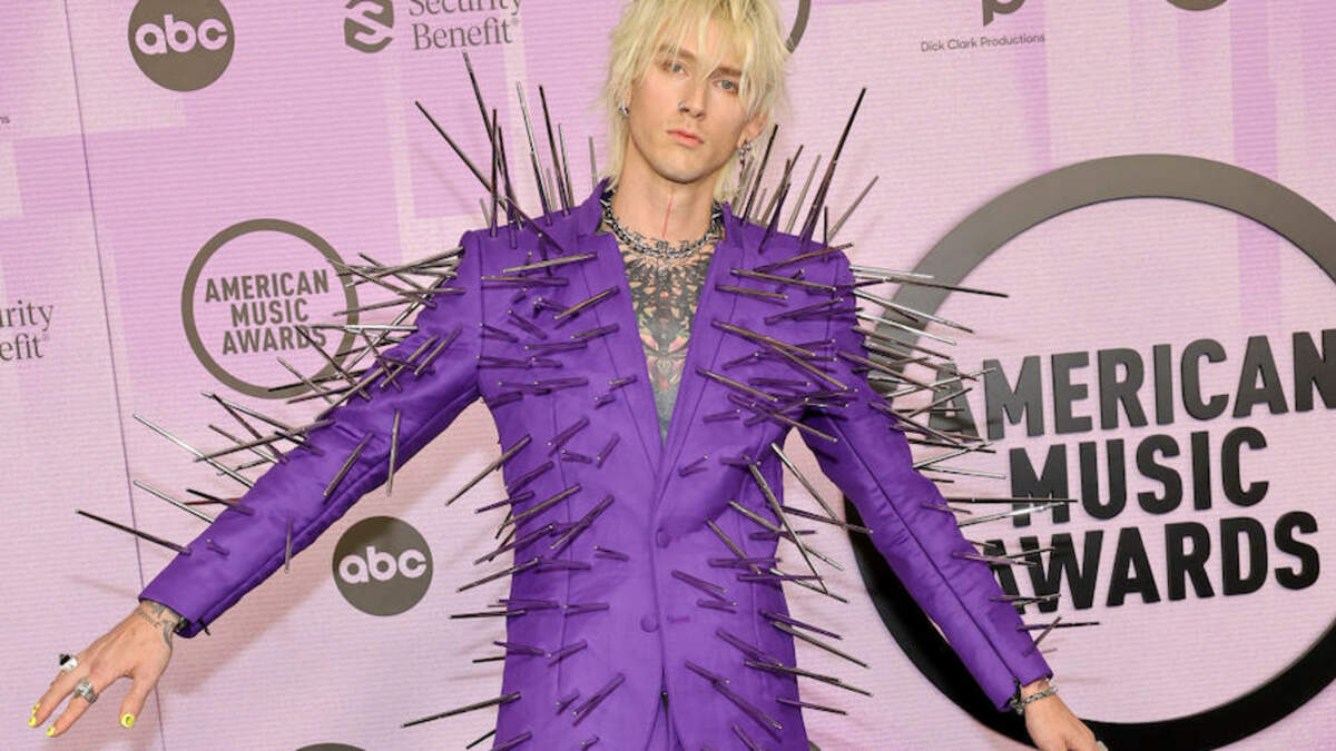 Machine Gun Kelly had some choice words for haters in the "rock community" when he took home the "Favorite Rock Artist" award at the American Music Awards Sunday night (November 20), beating out heavy hitters like Imagine Dragons, Red Hot Chili Peppers, The Lumineers, and Måneskin. Decked out in a spiked purple suit, the rapper-turned-rocker called out critics as he accepted the award for the second year in a row.